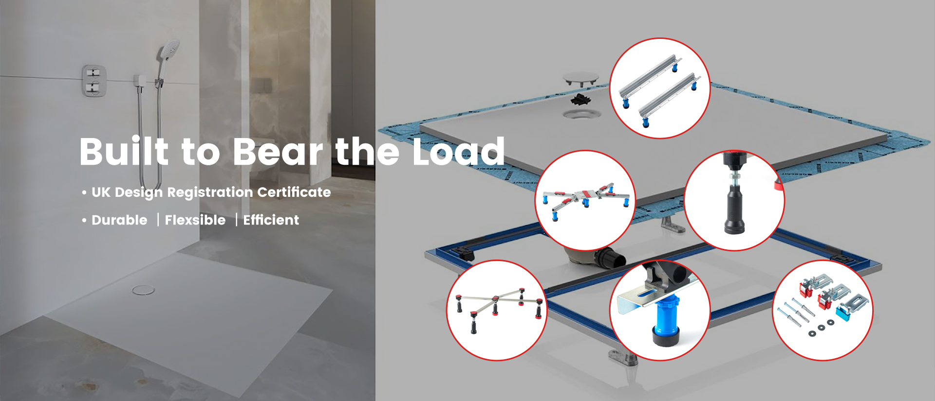 Till skillnad från traditionella helgolvsstöd ger ett ramsystem för duschkar ett starkt men justerbart stöd för duschbasen, vilket säkerställer enkel installation, bättre dränering och långvarig stabilitet.